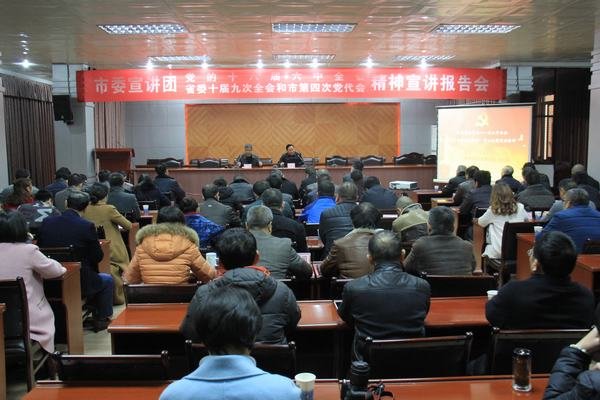 根據(jù)市委統(tǒng)一部署,2016年12月20日下午,市委宣講團(tuán)黨的十八屆六中全會(huì)、省委十屆九次全會(huì)和市第四次黨代會(huì)精神宣講報(bào)告會(huì)在工程局機(jī)關(guān)舉行。市委宣講團(tuán)成員、市委黨校教務(wù)科科長(zhǎng)、高級(jí)講師馬航東同志到會(huì)作宣講報(bào)告。黨委書(shū)記、局長(zhǎng)鄔清富主持會(huì)議。
