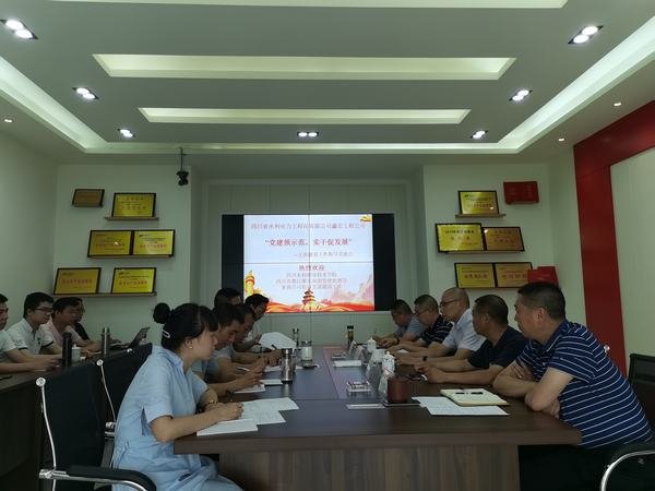 2020年6月23日,鑫宏工程公司在都江堰水利大廈公司會議室組織開展支部建設工作指導交流會暨“黨建領示范,實干促發展”主題黨日活動。活動特別邀請四川省水利職業技術學院水利工程系黨總支書記李增勇、學生工作處副處長李軍,四川省都江堰東風渠管理處金牛站站長毛旗到公司指導支部建設工作。公司黨支部書記、經理毛偉,公司支部紀檢委員、副經理曹軍,公司支部宣傳委員、總工程師鄭中華,公司支部組織委員、工會主席羅極川等全體黨員及部分職工參加交流會。