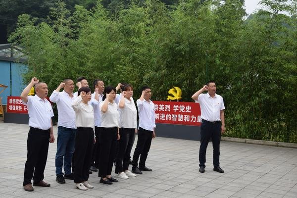 在講解員的引導(dǎo)下,大家首先參觀了紀(jì)念館內(nèi)集中展示的文物、影像圖片、書籍、烈士自傳以及其他文獻資料,通過不同角度、不同載體,詳細了解英勇的人民解放軍征戰(zhàn)西南、決戰(zhàn)川西、解放成都的戰(zhàn)斗歷程,深刻感受先烈們?yōu)榱烁锩鼊倮慌铝餮獱奚某绺呔瘛T诩o(jì)念館外,由公司經(jīng)理毛偉領(lǐng)誓,全體黨員面向鮮艷的黨旗重溫入黨誓詞。