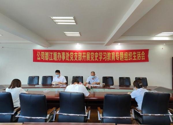 2021年8月11日,根據(jù)水利廳和水發(fā)集團(tuán)黨史學(xué)習(xí)教育的總體安排,按照公司黨史學(xué)習(xí)教育實(shí)施方案的要求,為推進(jìn)黨史學(xué)習(xí)教育,都江堰辦事處黨支部在都江堰水利大廈三樓會(huì)議室組織召開黨史學(xué)習(xí)教育專題組織生活會(huì)。緊緊圍繞“學(xué)黨史、悟思想、辦實(shí)事、開新局”為主題,認(rèn)真貫徹“學(xué)史明理、學(xué)史增信、學(xué)史崇德、學(xué)史力行”的總要求,對(duì)照“十大現(xiàn)象”和“六種表現(xiàn)”深刻查擺問題,檢視剖析問題,明確整改措施,盤點(diǎn)黨史學(xué)習(xí)教育的收獲以及努力方向。公司黨委委員、工會(huì)主席、黨委工作部部長(zhǎng)夏永紅到會(huì)指導(dǎo),都江堰辦事處黨支部副書記李陵主持會(huì)議,全體黨員參加會(huì)議。