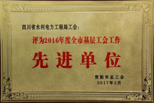 工程局工會被評為資陽市2016年度基層工會工作“先進單位”