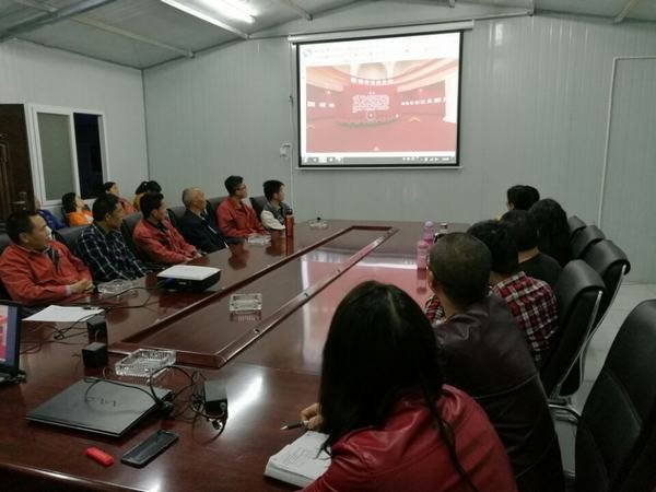 2017年10月25日-27日晚,局三機處在博瓦電站項目部組織職工觀看了由中央電視臺網絡平臺播出的《砥礪奮進的五年》大型成就展,處長薛斌帶領全處員工重溫十八大以來黨和國家事業發展的輝煌成就。