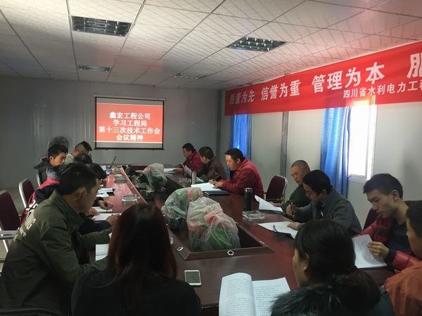 2017年11月24日中午,鑫宏公司在水洛河新藏電站項目部會議室組織召開專題會議,傳達(dá)學(xué)習(xí)2017年工程局第十三次技術(shù)工作會議精神,會議由公司總工程師鄭中華主持。