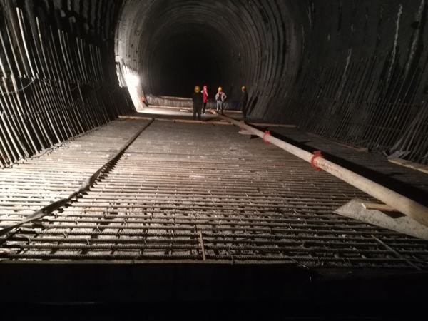 新藏電站引水隧洞7#洞上游全長(zhǎng)1060米,2017年11月29日貫通。公司通過(guò)公開(kāi)招標(biāo),評(píng)選出合格的施工隊(duì)伍進(jìn)行隧道混凝土襯砌施工。從2018年4月1日起,經(jīng)入場(chǎng)安全教育和三級(jí)安全教育合格后,混凝土襯砌施工隊(duì)伍即進(jìn)入正常施工階段,于4月16日順利完成第一倉(cāng)混凝土澆筑施工。底板混凝土襯砌設(shè)計(jì)厚度為0.4米(Ⅳ類(lèi)),此次澆筑倉(cāng)號(hào)為k13+300~k13+324段,共澆筑混凝土80立方米。澆筑過(guò)程中采用分層澆筑,及時(shí)平倉(cāng),振搗到位,對(duì)于預(yù)埋件和止水部位重點(diǎn)監(jiān)控,防止位移,充分確保澆筑質(zhì)量。