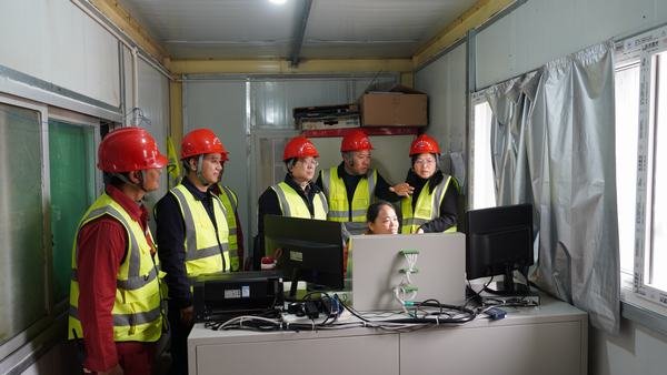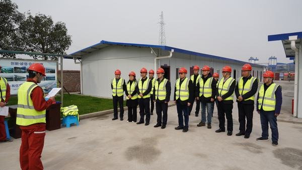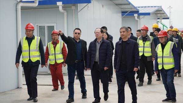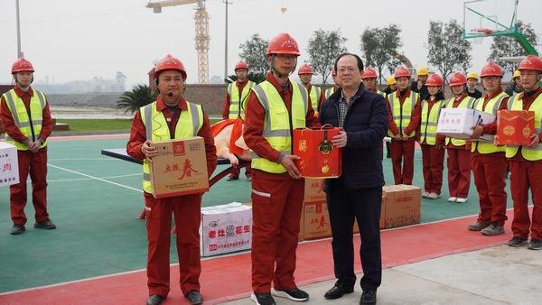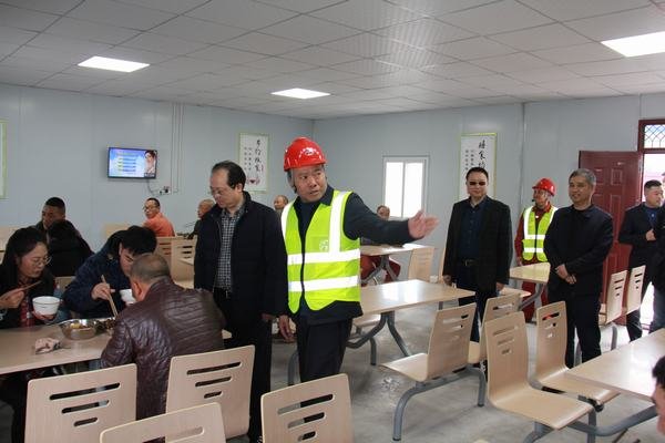 慰問困難職工后,鐘杰董事長一行又驅車深入岷江虎渡溪航電樞紐工程項目慰問一線干部職工并檢查指導工作,向春節(jié)期間堅守崗位的干部職工表示新春慰問和祝福,并送上慰問品。之后,在公司黨委書記、董事長代勇,總經理袁斌,副總經理茍仕聰、鄒世界及省水利設計院公司三分院副院長單智杰、項目設總鐘鴻等陪同下,察看了營地建設,接受安全告知后,深入到廠房前池、一期閘壩工程、拌和站等現(xiàn)場檢查指導工作,詳細察看和了解安全生產、進度質量、文明施工、環(huán)保水保等相關工作情況,對拌和系統(tǒng)布置、自動化程度、管理制度給予了肯定和贊揚,并對提前做好安全度汛等工作做出要求。
