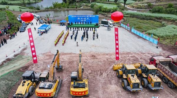 4月2日下午,自貢市榮縣旭陽鎮夜合村張家灣隧洞出口現場彩旗飄揚,洋溢著一派喜慶歡樂的氣氛,由工程局公司承建的自貢小井溝水利工程支渠工程在這里隆重舉行開工儀式。自貢市副市長鮮光鵬出席活動并宣布項目開工,市政府副秘書長江聲全出席儀式,自貢水務投資集團有限公司黨委書記、董事長梁杰介紹工程情況,工程局公司總經理袁斌作表態發言,榮縣縣委副書記、縣長鄭小清出席講話,自貢小井溝水利工程公司總經理吳川報告開工準備就緒、提出開工請求。市水務局局長古榮華主持活動儀式。