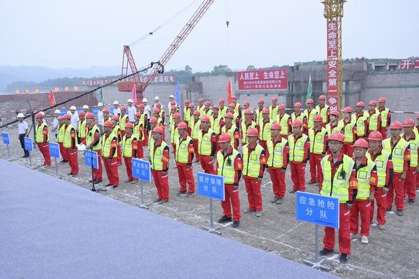 2021年5月21日10﹕30,四川省水利發(fā)展集團(tuán)有限公司(以下簡(jiǎn)稱“水發(fā)集團(tuán)”)在眉山市青神縣岷江虎渡溪航電樞紐工程項(xiàng)目舉行2021年防汛應(yīng)急演練,青神虎渡溪航電開發(fā)有限公司和四川省水利電力工程局有限公司承辦本次演練,參加演練觀摩的單位有四川省水利水電勘測(cè)設(shè)計(jì)研究院有限公司、都江堰水利產(chǎn)業(yè)集團(tuán)有限責(zé)任公司、四川省亭子口灌區(qū)建設(shè)開發(fā)有限公司、四川省向家壩灌區(qū)建設(shè)開發(fā)有限責(zé)任公司。演練指揮長(zhǎng)由水發(fā)集團(tuán)黨委書記、董事長(zhǎng)鐘杰擔(dān)任。