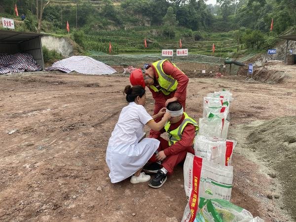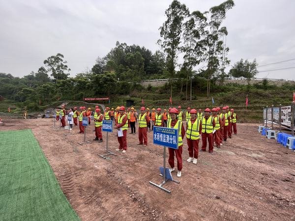 演練模擬場景為自貢市榮縣全面進(jìn)入主汛期,榮縣境內(nèi)發(fā)生強(qiáng)降雨,有可能發(fā)生山洪、泥石流、坍塌等自然災(zāi)害,將危及瓦店子提灌渠2#隧洞出口作業(yè)面安全,演練按照突發(fā)事件、預(yù)測預(yù)警、應(yīng)急響應(yīng),涉險人員、設(shè)備安全撤離,突發(fā)事件應(yīng)急處置等內(nèi)容進(jìn)行實(shí)戰(zhàn)演練。