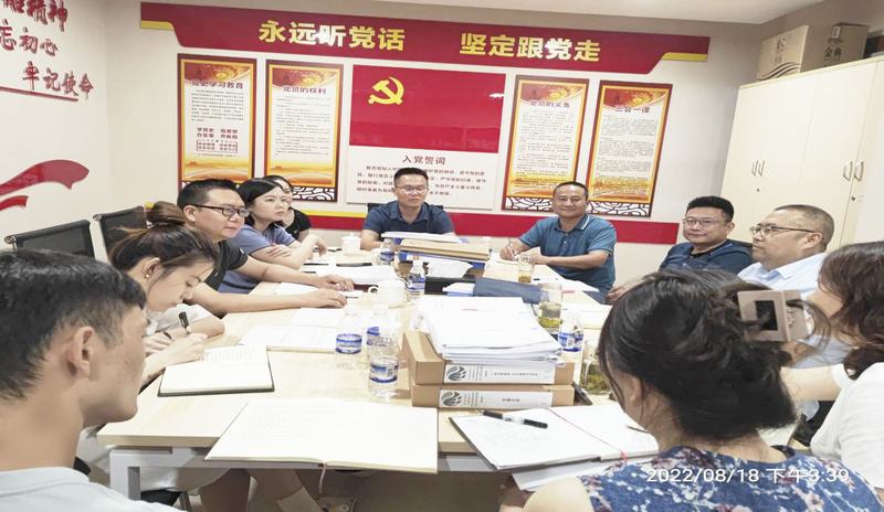 2022年8月18日,為進一步深化“兩去兩服務”作風整頓,集團黨委工作部部長李佳俊以及部門成員賴艷、楊鈞茜,設計院公司黨群工作部副主任王培、產業公司黨群工作部主任張治一行到公司開展“轉作風抓發展互學互促”調研活動。公司專職黨委副書記唐驚濤及被抽查的虎渡溪項目部黨支部書記程靜、機械廠黨支部書記趙曉輝、機關第四黨支部書記盧濤,黨員代表以及公司黨委工作部全體成員參加會議調研。