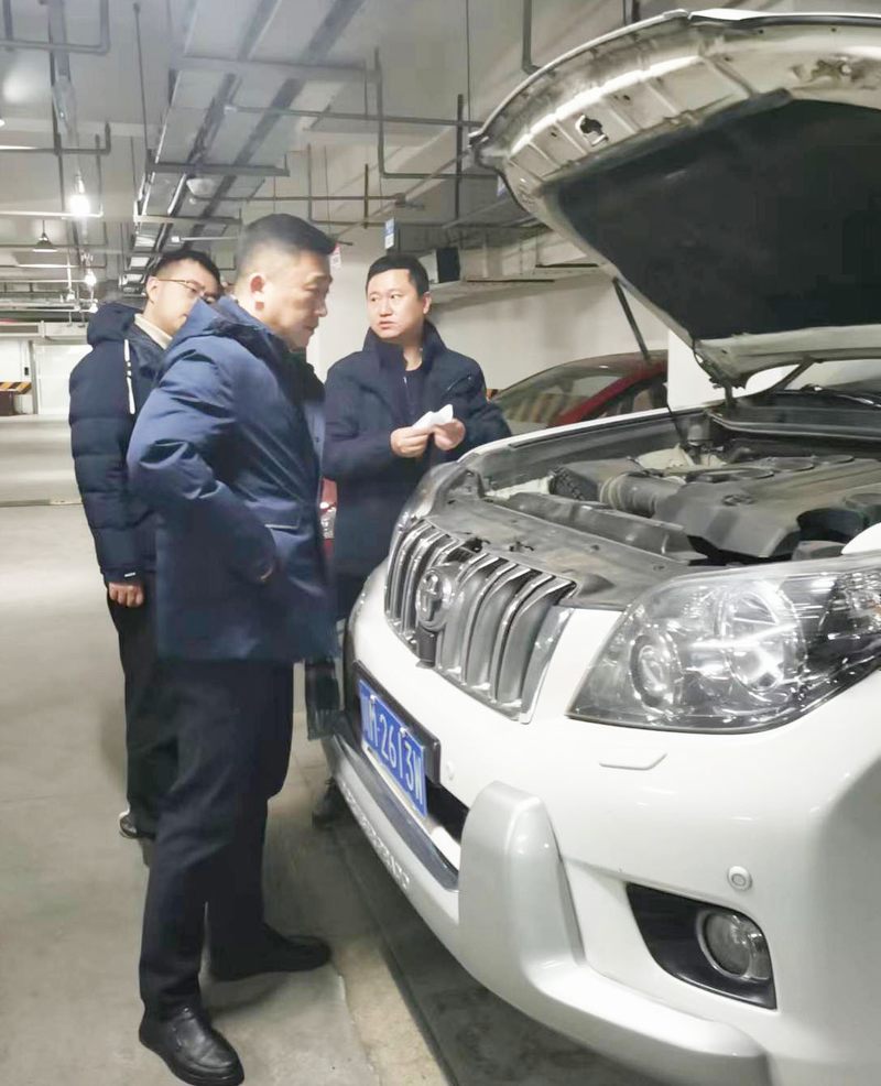會后,倪川、董源及公司駕駛員一行到停車場逐一現場檢查車輛安全。