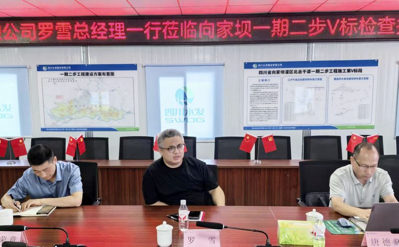 為嚴把安全質量關,加快推進施工現場建設,8月5日,公司董事、總經理羅雪帶隊到向家壩灌區北總干渠一期二步工程第Ⅴ標段檢查指導工作。