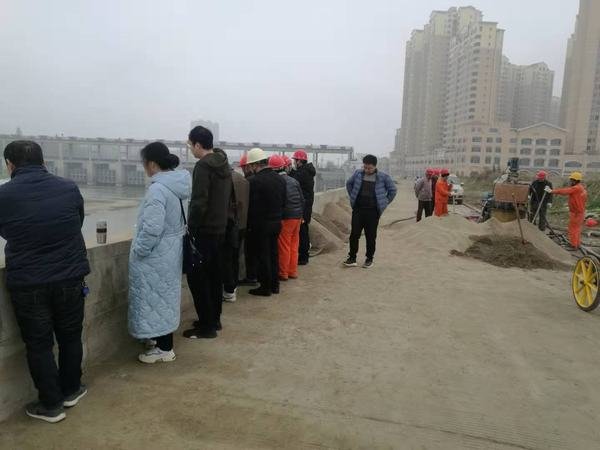 2020年11月30日,成都市天府水城城鄉(xiāng)水務(wù)建設(shè)有限公司代表唐力勁一行到四川省水利電力工程局有限公司地基工程處承建的金堂縣沱江盤龍寺攔河閘左岸堤防面板裂縫處理工程現(xiàn)場見證生產(chǎn)性試驗(yàn)成果。成都市水利電力勘測設(shè)計(jì)院、四川省禾力建設(shè)工程檢測鑒定咨詢有限公司、四川瑞泰項(xiàng)目管理有限公司、四川省水利電力工程局有限公司金堂縣沱江盤龍寺攔河閘工程項(xiàng)目經(jīng)理部等各單位相關(guān)人員一同見證。