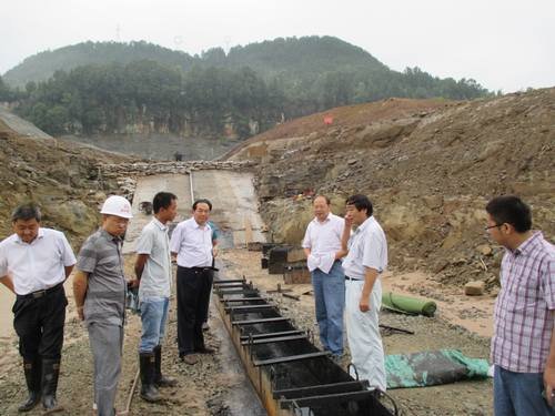 2014年9月12日,水利廳總工程師梁軍一行冒雨到我局承建施工的天星橋水庫項目檢查指導(dǎo)工作。