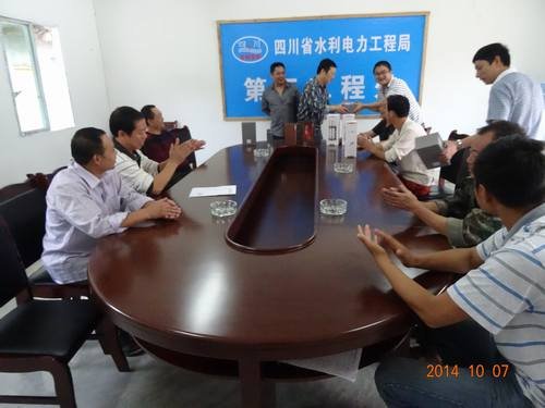 后溝水庫項目部經理李軍為獲獎職工頒發比賽紀念品