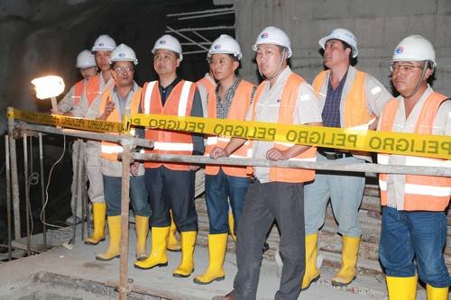 經(jīng)過兩天17000公里的長途飛行,在抵達(dá)厄瓜多爾TP項目部后,鄔局長不顧旅途勞累和時差影響,在項目部經(jīng)理高代勝、副經(jīng)理楊聰明、李靜、王安明等項目相關(guān)人員陪同下,先后到取水口閘壩樞紐、壓力隧洞進(jìn)出口、地下廠房、尾調(diào)室、泄水洞等施工現(xiàn)場察看,詳細(xì)了解施工技術(shù)方案、設(shè)備、材料、人員,特別是厄瓜多爾當(dāng)?shù)貏趧?wù)人員等具體情況,并不時提出指導(dǎo)意見。