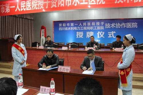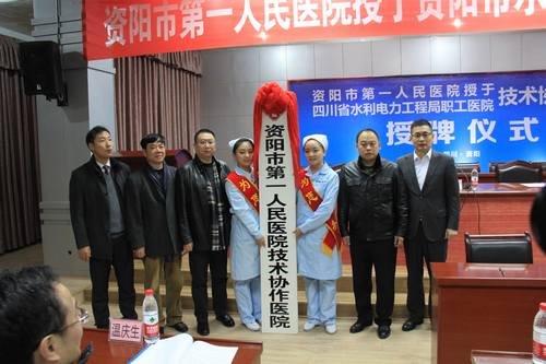 資陽市第一人民醫(yī)院副院長溫澤強與局職工醫(yī)院副院長何建山現(xiàn)場簽訂了協(xié)作醫(yī)院合作協(xié)議,溫澤強為合作醫(yī)院授牌。