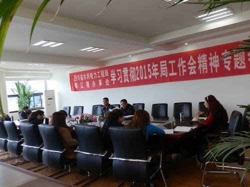 4月10日上午,局都江堰辦事處在水利大廈三樓會議室召開專題會議,學習貫徹2015年局工作會精神。會議由局都江堰辦事處支部書記、工會主席孫代華主持,辦事處全體職工參加會議。