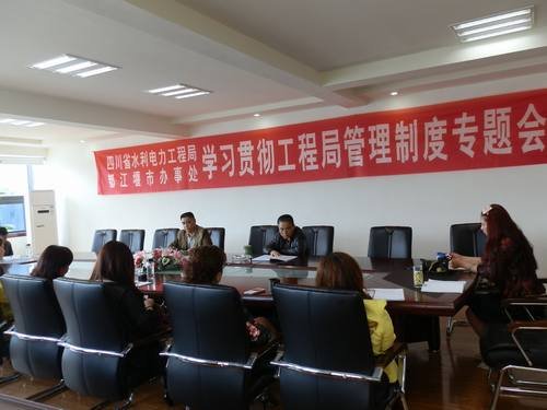 2015年4月28日,局都江堰辦事處在水利大廈三樓會議室組織召開專題會議,學習貫徹工程局管理制度。會議由黨支部書記、工會主席孫代華主持,辦事處全處職工參加會議。