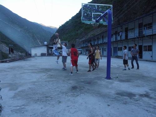 2015年8月12日下班后,局鑫宏公司固滴電站項目部3名員工津津有味的在工地閱覽室看書、工地籃球場上8名員工正在火熱上演一場籃球賽……