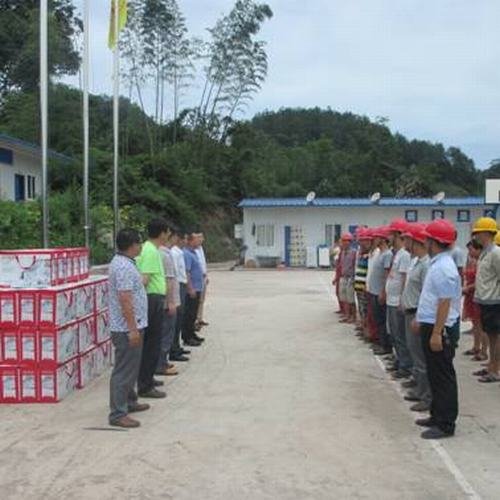 局第一工程處參建職工代表列隊歡迎, 宋慶伍作了慰問講話。受縣委書記王光柱同志委托,他代表宜賓縣委、縣人民政府向參加蟠龍湖水庫建設的員工表示誠摯的慰問!他說,蟠龍湖水庫作為該縣唯一的一座中型水庫,是宜賓市在建的最大水利工程,更是一項利民工程。工程開工以來,建設者們克服了交通不便、工程任務緊等困難,突出工作重點,優(yōu)化施工,有力地推進了工程建設,再一次展現(xiàn)了“四川水利鐵軍”的風采和國家一級施工企業(yè)的優(yōu)秀企業(yè)文化。四川省水利電力工程局具有豐富的施工經(jīng)驗和管理能力,在宜賓地區(qū)承建了多個水利水電項目,為開發(fā)宜賓水利水電資源做出了巨大貢獻,促進了宜賓縣的地方經(jīng)濟發(fā)展。工程建成后,雙龍鎮(zhèn)不僅有高峽出平湖的壯景麗畫,而且將擴灌萬畝良田,惠澤四方百姓。在此,請同志們在辛勤工作的同時保重身體,為宜賓農(nóng)田水利建設再立新功。