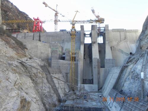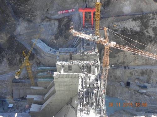 11月30日15時,九龍峽水電站大壩工程4#壩段2#梁吊裝完閉,標志著歷時3年艱辛建設的九龍峽水電站大壩工程已達到全線封頂目標。九龍峽水電站共有9個壩段,壩高62米,壩長158米,混凝土澆筑量約14萬方。