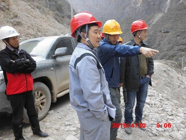 2016年4月30日上午,華電集團水洛河公司總經(jīng)理蒲春雨一行在博瓦項目建管部、設計、監(jiān)理等相關負責人的陪同下,蒞臨由局三機處承建的博瓦水電站首部樞紐工地現(xiàn)場檢查并指導相關工作。