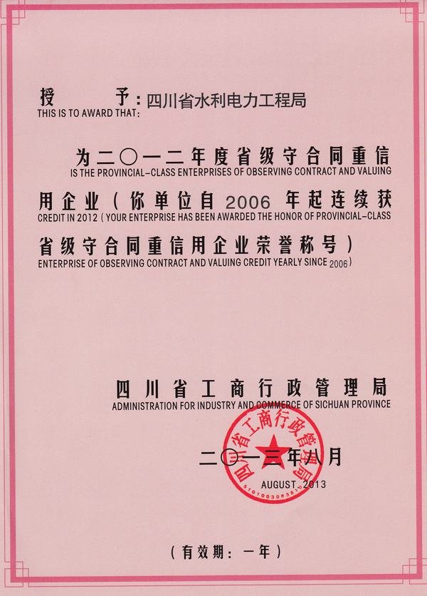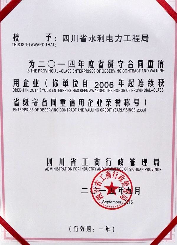 省級守合同重信用企業