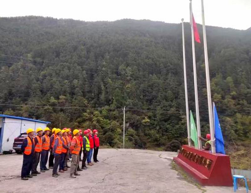不忘初心擔使命,禮敬國旗慶國慶。亭子口、三四溝、隴西項目分別在駐地辦公樓前舉行國慶升旗儀式。晨光初照,伴隨著雄壯激昂的國歌聲,鮮艷的五星紅旗冉冉升起,全體職工肅立注目,共同祝愿祖國更加繁榮昌盛。