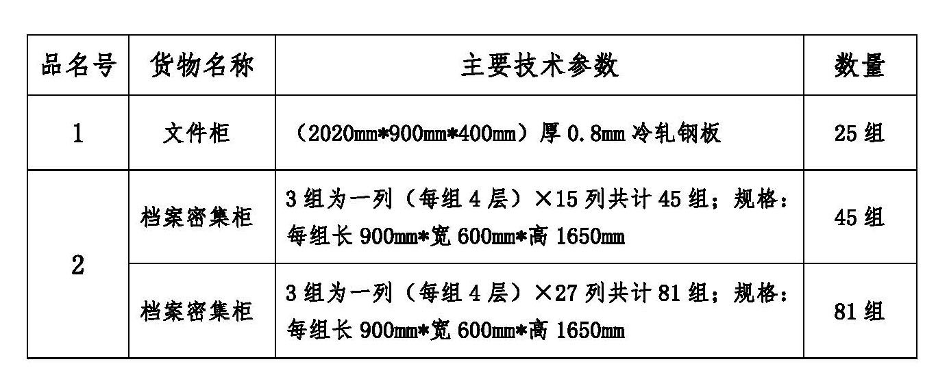 4、采購項目:密集架、文件柜。