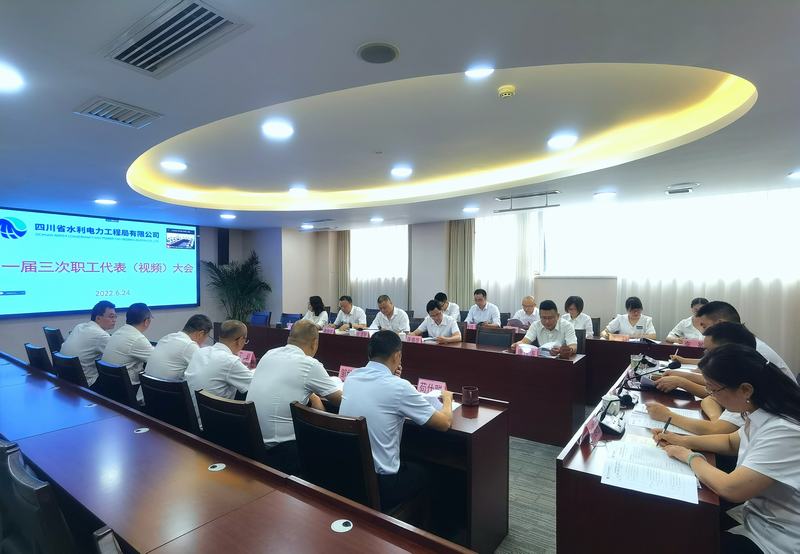 2022年6月24日,工程局公司召開第一屆第三次職工代表(視頻)大會,主會場設在公司成都總部會議室,分會場根據職工代表分布分別設置在總部資陽辦公區、都江堰市辦事處、虎渡溪項目部、小井溝工程項目部、龍塘水庫項目部、亭子口工程三分公司項目部、亭子口工程四分公司項目部、井研供水管網改擴建工程項目部。來自公司總部及所屬各單位的82名職工代表、5名列席代表參加會議。公司黨委委員、職工董事、工會主席夏永紅主持會議。